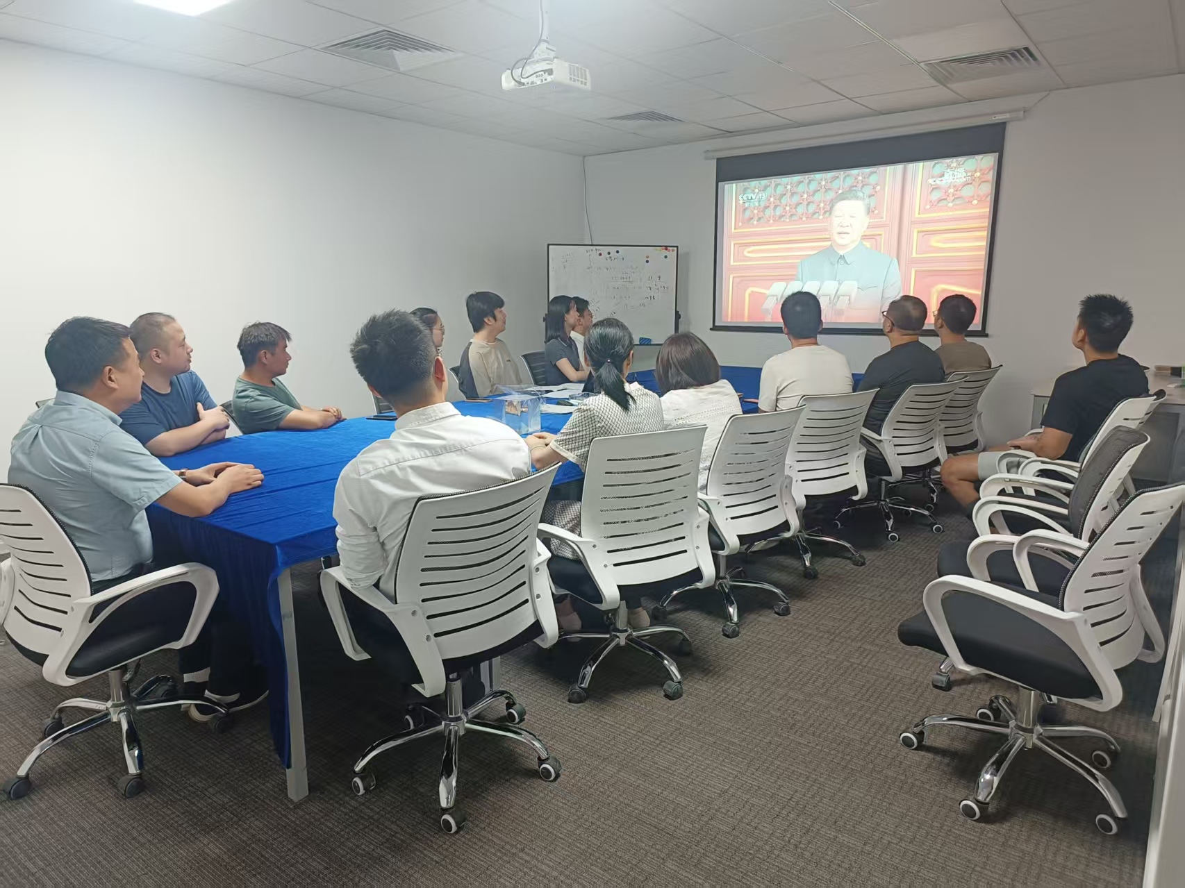 上午9時(shí),大家準(zhǔn)時(shí)聚集在各公司的會議室,自發(fā)整理好衣襟,眼神中滿是期待與肅穆。當(dāng)直播畫面切到天安門廣場,鮮艷的五星紅旗在晨光中冉冉升起,激昂的歌聲里,是跨越代際的信仰傳承,是屬于京蘭人的集體共鳴。?